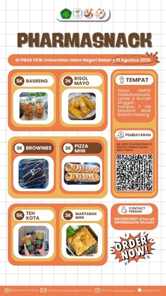 Malang, 20 September 2025 – Himpunan Mahasiswa Program Studi Farmasi (HMPSF) Habbatussauda’ Universitas Islam Negeri (UIN) Maulana Malik Ibrahim Malang berhasil melaksanakan program PengadaanPerlengkapan Laboratorium yang ditujukan bagi mahasiswa baru tahun akademik 2025. Kegiatan ini berlangsung sejak 22 Juni hingga 15 September 2025 dengan pusat pelaksanaan di Kampus 2 UIN Malang. Program ini bertujuan untuk memfasilitasi mahasiswa, khususnya angkatan baru, dalam memperoleh perlengkapan laboratorium seperti jas, tas, dan alat praktikum dasar. Perlengkapan tersebut meliputi jas laboratorium, tas/kotak alat, serta seperangkat alat praktikum seperti penjepit kayu, pipet tetes, batang pengaduk, sendok tanduk, tabung reaksi, beaker glass, dan spatula stainless. Total sebanyak 250 mahasiswa baru menerima perlengkapan yang telah dikoordinasikan oleh panitia.