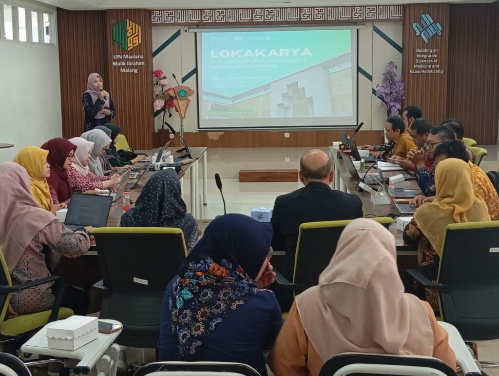 Program Studi Sarjana Farmasi Fakultas Kedokteran dan Ilmu Kesehatan (FKIK) UIN Maulana Malik Ibrahim Malang menggelar Lokakarya Penyusunan Rencana Pembelajaran Semester (RPS) pada Sabtu, 29 November 2025. Kegiatan yang diselenggarakan di Auditorium Lantai 3 Gedung Ibnu Sina ini dihadiri oleh Ketua Program Studi Sarjana Farmasi, Prof. Dr. Roihatul Mutiah, SF., M.Kes., Apt., Sekretaris Program Studi, Dr. Apt. Yen Yen Indrawijaya, S.Farm., M.Farm.Klin., seluruh dosen civitas akademika Program Studi Sarjana Farmasi, serta Prof. apt. Helmy Yusuf, S.Si., M.Sc., Ph.D, wakil dekan 1 Fakultas Farmasi Universitas Airlangga Surabaya sebagai narasumber. Kehadiran para tenaga pendidik dan pimpinan Program Studi Farmasi menjadi bukti nyata komitmen bersama untuk menghadirkan kurikulum yang lebih relevan, adaptif, dan selaras dengan perkembangan ilmu pengetahuan, tuntutan dunia pendidikan, serta dinamika profesi farmasi yang terus berkembang.